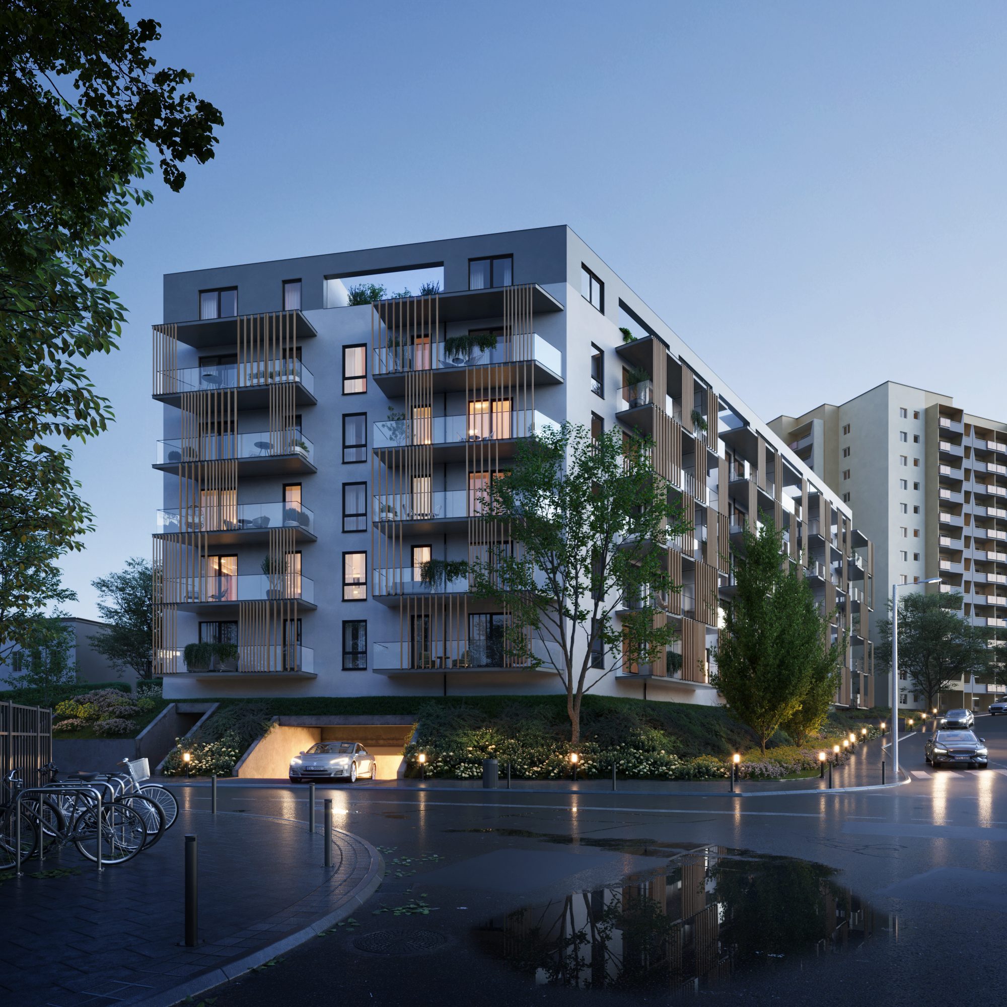 Na komfort mieszkańców wpłyną również cichobieżne windy, które zapewnią wygodny dostęp do dwukondygnacyjnej hali garażowej z miejscami postojowymi. Dodatkowo w budynku zaplanowano komórki lokatorskie, które umożliwią przechowywanie rzeczy osobistych.